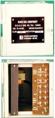 The Block Bell Equipment is a part of the block instrument which is provided at the end of the block sections at cabins / ASMs. DC impulses cannot be sent in AC electrified area since block circuit is converted from overhead alignment to underground cable terminated as terminating transformer at both of the ends. This Equipment is used in AC electrified area to convert the DC impulses to AC at the sending end and AC impulses to DC all the receiving end. The Equipment is a single transistor oscillator to give 45V AC across 1120 ohms. This also has a full wave rectifier circuit to rectify the received AC Voltage and to energize a relay. The plunger is connected to Terminals TS9 and TS10 of terminal strip (Refer Circuit diagram enclosed). When the plunger is pressed 12 VDC supply is fed simultaneously to the Transistor Oscillator and the Relay So/2. The output of the oscillator, Viz, 45 Volts at 150 Hz, is thus made available at terminals. TS3 and TS11 through the energized contacts of Relay So/2. This is fed to the line. At the distant station, this voltage from the line is fed to terminals TS3 and TS11 at the Block Bell Equipment installed at the station. Though the normally closed contacts of Relay So/2, this voltage is fed to the bridge rectifier. This rectified voltage is available, as desired from terminal TS4 and any of the other terminals, namely, TS5, TS6, TS7, TS12, TS13, TS14 and TS15 for ringing the bell. When the plunger is operated, the single transistor is energized of the Oscillator gives an output 60V (open circuit) @ 150 Hz and 45V (across 1120 ohms) at 50 Hz, sinusoidal at TS3 and TS11. WEIGHT : 2 ½ Kg. (Approx.) |
