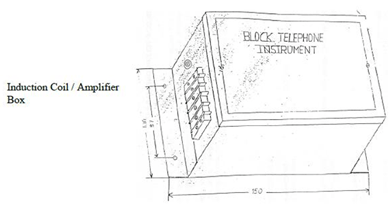 The Handset is made of ABS Plastic and has a Metallic Hook Clamp. It has Electro Dynamic Transmitter and Receiver Insets. It has a PTT Switch and 6 Way Coiled Cord Terminated with ‘U’ Clips to be connected to the Induction Coil / Amplifier Unit.