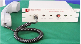DTMF Based Electronic Block Bell and Block Telephone Equipment is meant to be used in the place of Conventional Block Bell Equipment and Block Telephones. This Equipment is used for calling by DTMF Signalling and Communication via 2 Wire Line through OFC or Quad Cable to the other end station where the tone is decoded and an audio-visual indication is activated. Similarly the tone from the other end station also is received by the first end station. The Signalling and Speech Circuit arrangement works on 24V DC + 20% - 30%. Any Equipment can be used for ‘UP’ or ‘DOWN’ Signalling by using a DIP Switch provided inside the Equipment assembled in an aluminium box, duly powder coated. The Charger is housed in an MS Box of 1 mm thickness, with slots for ventilation and is covered with a wire mesh. |