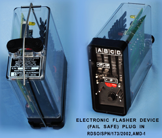 The Fail Safe Electronic Flasher Device manufactured by EPSILON is suitable for giving direct flashing supply to be used on Interlocking Panel(s) and / or driving a 24V DC neutral relay. The Flasher Device works on 24V DC and gives 24V DC nominal output. The design of the Circuit is of Fail Safe nature to ensure that no steady output is delivered in case of failure or open circuit / short circuit or ageing of any component or any momentary switching OFF / ON of the Power Supply or external surges. The Flasher Device is provided with protection against reverse polarity of supply. Any supply wrongly connected across its output shall not damage the device. The Flasher device is mounted on ‘Q’ Series Relay housing and is protected against dust and moisture. This Product can be provided WITH OR WITHOUT GALVANIC ISOLATION. |