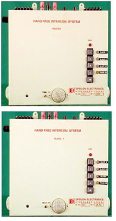 The Hand Free Inter Communication System consists of One Master + 3 Slaves and is used for Hand Free Inter Communication between Master to Slave and Slave to Slave, using Dual Tone Multiple Frequency (DTMF) Calling. It is a Duplex System using Two Tones in Voice Frequency Band for Selective Calling a particular Slave or Master. Caller Identification is provided visually with the aid of a Dual LED which is provided in each unit. When a call is received the Caller’s designated LED will glow Green in the Master and when the Trans become ‘ON’, the Green LED changes to RED. Each Equipment consists of the following :