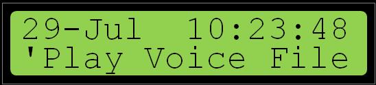 2. Idle State The LCD when ‘idle’ displays Date and Time on the Line1 and Station Id on Line 2. An example display is given below. Note: Station Id is a 16-character string consisting of 16 alphanumeric characters without any spaces in between. The same string is used in audio record file naming. When display is ‘idle’ state, it displays the call progress messages on Line2 and returns to ‘Station Id’ display when there are no calls in progress. Sample displays are shown below. The other strings that are displayed for other call states are: "Calling ALL... " 3. Main Menu The following are five main menu items available for user. "'Play Voice File"