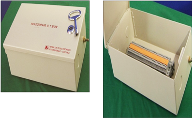 The Cable Termination Box can be supplied for 5 - 20 Pairs as per the requirement. The Box is rugged, weatherproof, and highly reliable and uses Universal Test Disconnect Terminal Blocks of PHOENIX OR WAGO Make. WEIGHT : 2.0 Kg. (Approx.) ![]() |