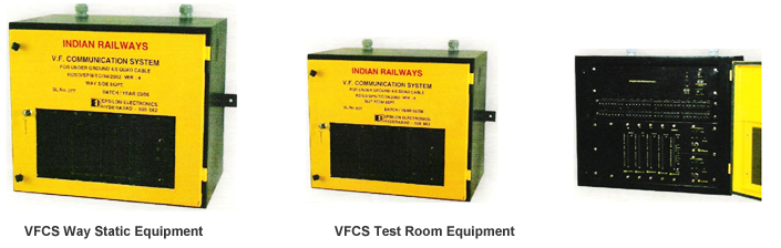 The Voice Frequency Communication System is used with Underground PET 4/6 Quad Cable of 0.9mm dia, having characteristic impedance of 470 ohms vide Specification No. IRS:TC:30/07 for Telecommunication between Way Side Stations and Control Office / Test Room. By using this System, the PET Quad need not be loaded to compensate the uneven attenuation characteristics over the voice band. There shall be no need for balancing. The typical characteristics of the cable is that the attenuation (losses) increases with frequency in the band of 300 - 3400 Hz. The Equalizer Amplifier designed for the System has the counter characteristics to equalize the cable losses in the V.F. Band of 300 to 3400 Hz. The System comprises of :